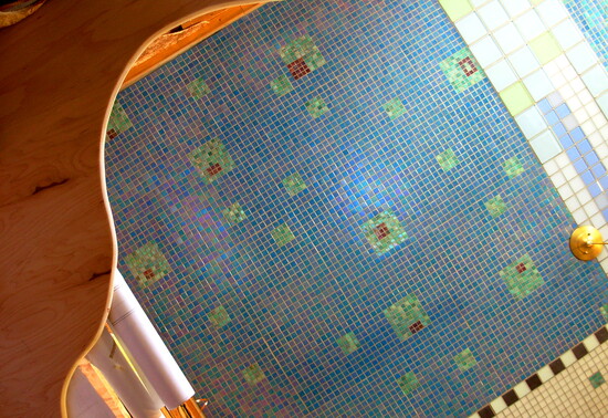 After completing the ceilings, Wolf submitted a kitchen floor concept inspired by a Louis Sullivan stencil. He spent weeks installing the floor himself—and in the process discovered tile as an expressive medium.
