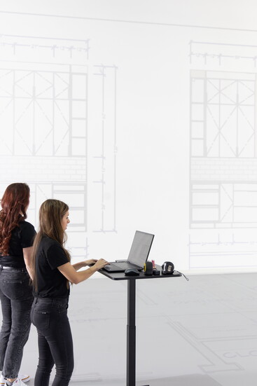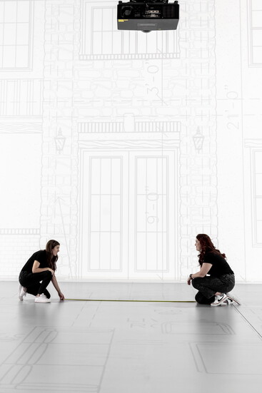 Walk Your Plans Tulsa transforms blueprints into spaces you can walk through. Inside Brooke and Sarah’s 5,000-square-foot facility, projectors beam blueprints to scale across 3,000 square feet of floor. Clients walk the distances from their future living room to the kitchen, to the garage, experiencing the flow of daily life. They can even place furniture to let clients see sofas, tables, and chairs in the rooms.