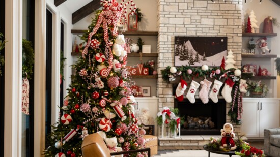 Two areas Wightman immediately took note of were the shelving on either side of the fireplace and the red-and-white theme of their Christmas tree. A doorway leading from the living room to other areas of the home was one area she wanted to work with.