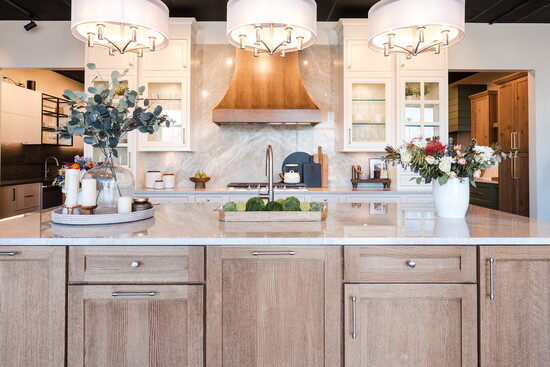 Designers are moving away from bright white toward warmer, more inviting tones and materials. Expect to see rich woods (like oak and walnut), earthy neutrals (taupe, clay, mushroom) and tactile surfaces such as stone and natural quartzite. These materials bring depth, comfort and timelessness to the kitchen space.