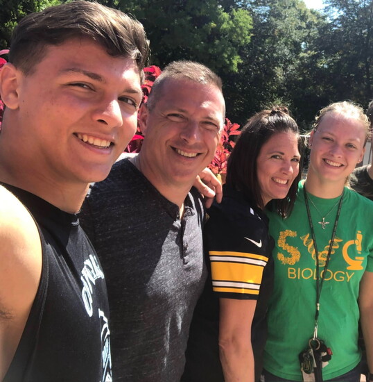 One of the first groups the Bakers were determined to stand with was Jake’s football team at Slippery Rock. The loss had been crushing to Jake’s teammates, as well. Even after his passing, the Bakers continued to attend practice and games. One by one, and sometimes in small groups, teammates would approach them just to hug them or to grieve with them. Jim and Karen were quick to share their contact info and open up lines of communication as teammates processed. The players called, a few of them speaking with the Bakers for hours and strong, healthy relationships began to form.