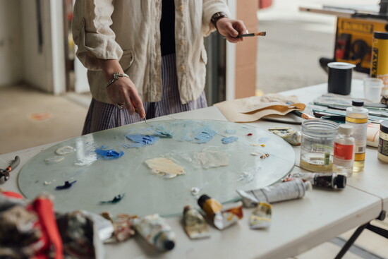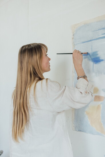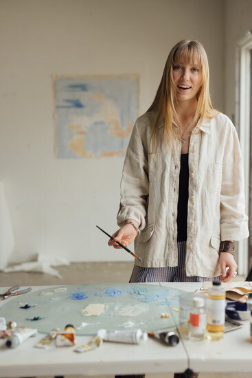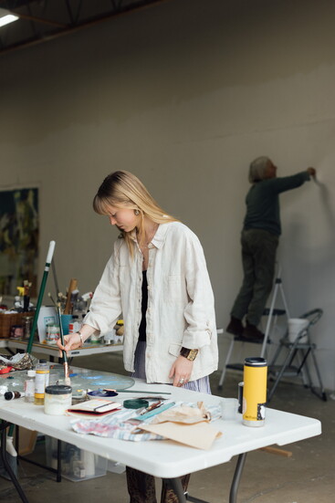 From then on, the experience opened a lot of doors. That tour not only introduced her to oil painting and abstraction in art, but also to Jean, whose work is typically larger-scale oil paintings. “We kind of hit it off right away once we started chatting. She saw me as an artist almost immediately.”