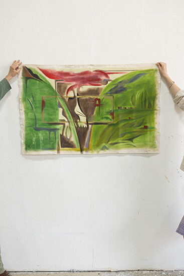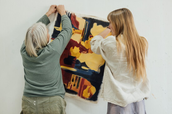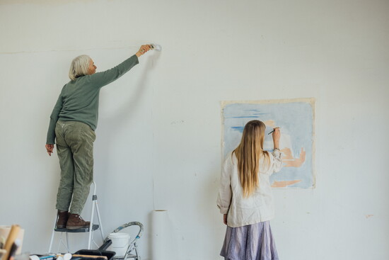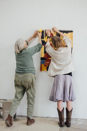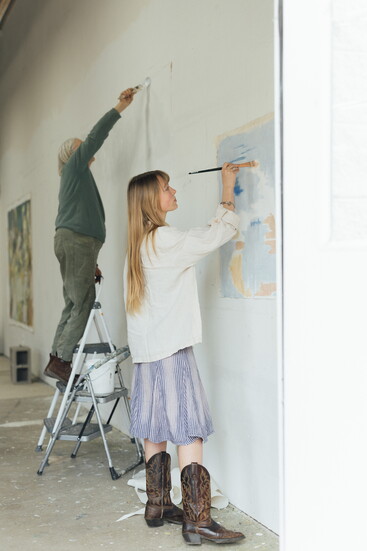 From sharing homemade meals and tea to listening to classical music as they work, Weiner has been able to observe how fiercely independent Pless is in her everyday life—telling her to be unafraid of “ruining a painting,” and to not hold yourself back from trying out an idea. “In my first few paintings, it felt like I was more designing, rather than just painting. It felt good to have somebody telling you to see where the painting will take you.”