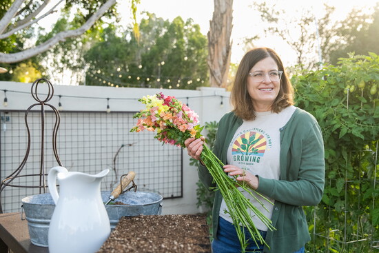 Becoming a Master Gardener marked a pivotal shift in both confidence and clarity. The training connected Angela with experts who could finally answer long-standing questions and helped her realize that many struggles weren’t personal failures but realities of desert gardening. “The fundamentals really mattered,” she says. Writing a monthly article for the Master Gardener publication Roots and Shoots revealed another passion: teaching through writing. Distilling complex information into simple, approachable guidance became second nature, and soon after, Growing in the Garden was born.