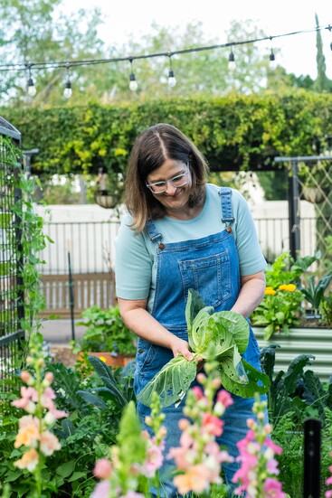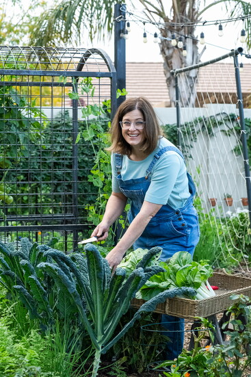 What began as a way to share lessons organically grew alongside her family. Angela never intended to build a business or pursue gardening full-time, but as her children grew older, so did her platform. In 2020, everything expanded at once: writing a book, growing the garden to its current size, filming weekly YouTube videos, and collaborating with Arizona Worm Farm to create a desert-specific Mel’s Mix blend. “The vision itself has stayed consistent,” she explains. “Teaching people how to garden successfully in the desert by focusing on the fundamentals of soil, timing, watering, and sunlight.”