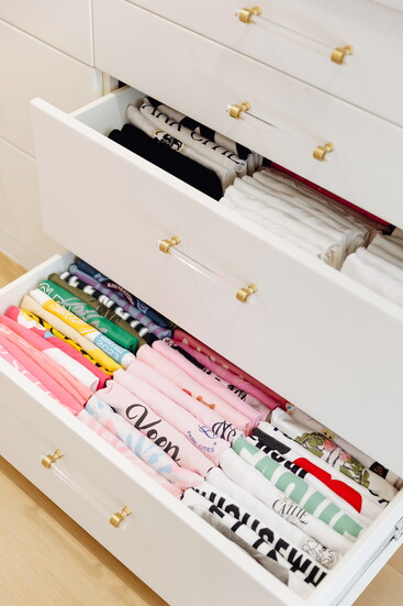 “Everyone on our team is a mom, and we love working with other local families, so the Westcotts were a perfect fit. As a fashion influencer, Kameron is always receiving new items to shoot for her social media campaigns. Not only does she have a large wardrobe, but she also needs customized systems to support the constant rotation—clothing for upcoming photo shoots, items she wants to consign or donate, and a dedicated home for everything she plans to keep. Our team specializes in creating tailored organization solutions and providing ongoing maintenance that support busy, ever-evolving lifestyles like hers.”
