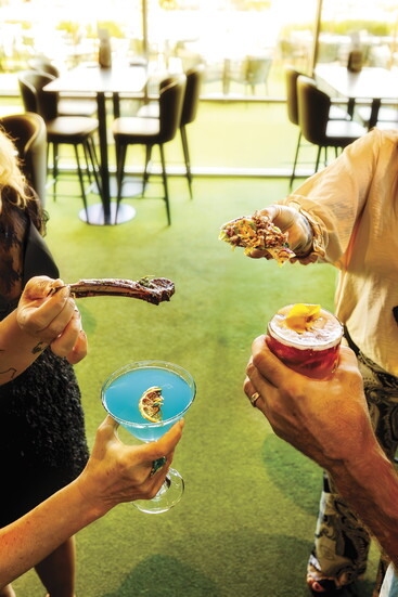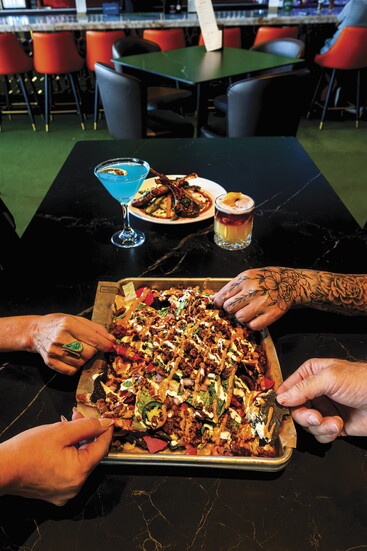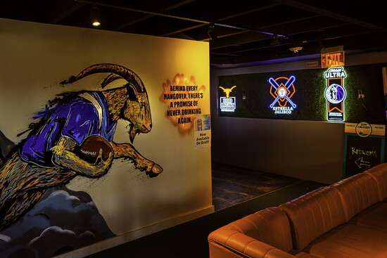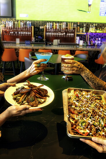 Behind the bar, GOATs boasts 64 beers on tap to cater to draft lovers, while cocktails like the hibiscus-infused “Tight Leggings” martini draw a loyal following. During the week, the sports bar has happy hours from 11 a.m. to 7 p.m., where patrons can score $2.99 domestic beers and $5 wells.