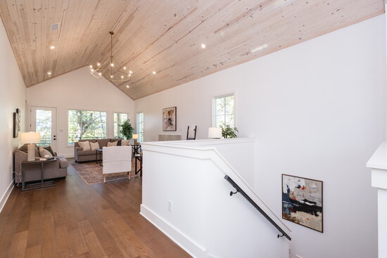 Built by Boyce Holmes of HBH Builders, the home’s interiors are bathed in neutral tones with warm wood accents, which “provide a calming atmosphere,” Allison says.