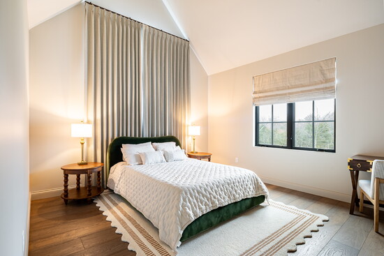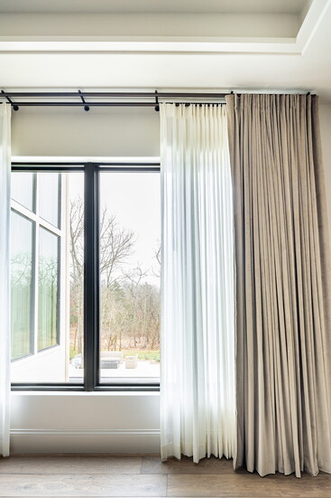 The Bucyrus homeowners' final choices included draperies accented with sheers and a few roman shades to complement the home's minimalist contemporary look and bohemian accents. The entire project took 12 weeks from initial contact to final install.