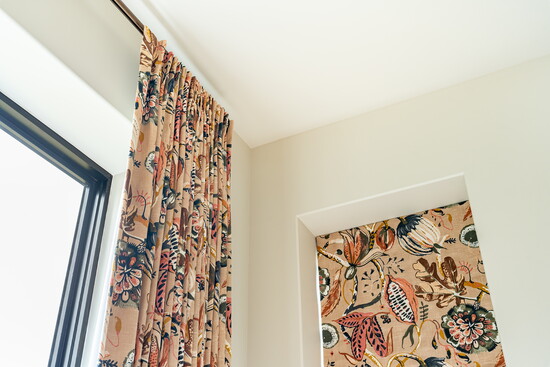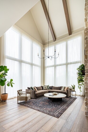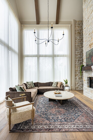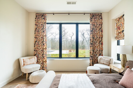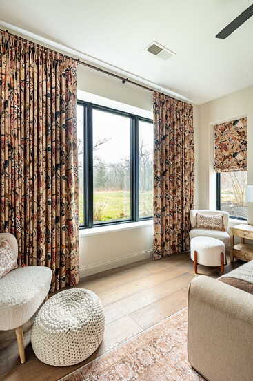 The Bucyrus homeowners' final choices included draperies accented with sheers and a few roman shades to complement the home's minimalist contemporary look and bohemian accents. The entire project took 12 weeks from initial contact to final install.