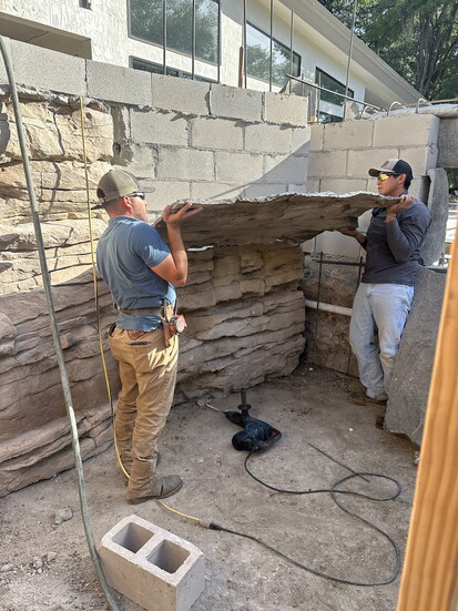 While traditional saunas rely on wood, RicoRock’s cast concrete panels offer a unique thermal advantage. The structure was built using block walls and a concrete roof, with RicoRock’s signature rock panels attached for a natural finish.