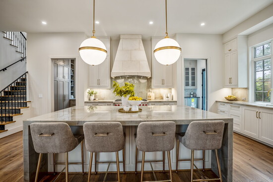 In kitchens, demand continues to focus on function and longevity. According to Winfrey, back kitchens remain popular, along with open floor plans and high-quality cabinetry. Flooring choices tend to favor long-plank engineered wood, while slab backsplashes made of marble or granite remain a frequent request.