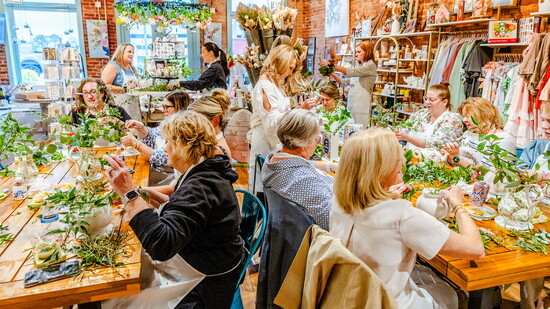 Gather & Bloom is open from 10 AM - 6PM, Monday-Saturday and 1 PM to 6 PM on Sunday. Visit gatherandbloomboutique.com for more info or to register for a workshop.