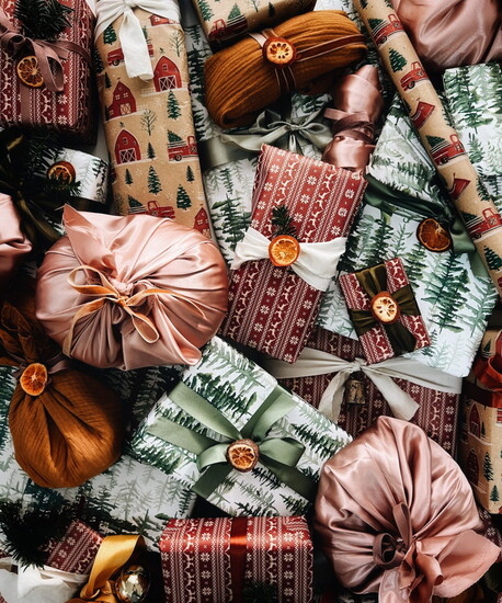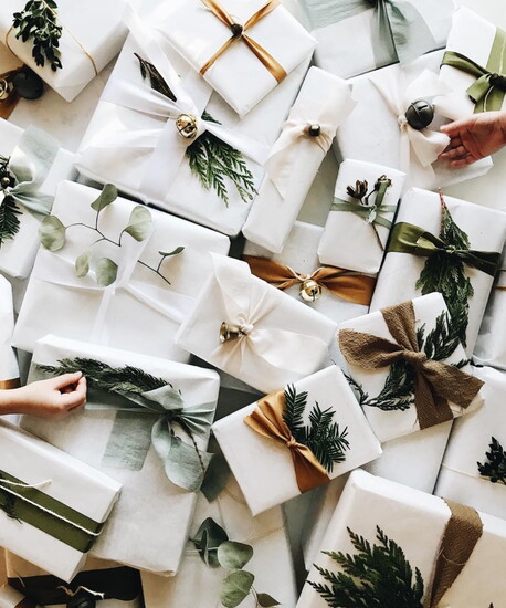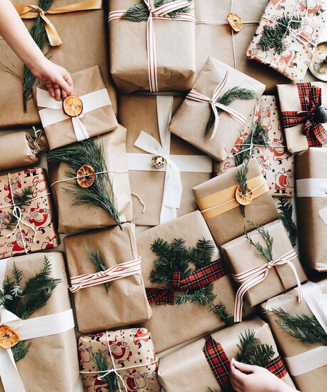 Citrus forever: I found this pale blue striped wallpaper and decided to make my entire life about it. I love this uniform look. Dried citrus always makes any gift pop.