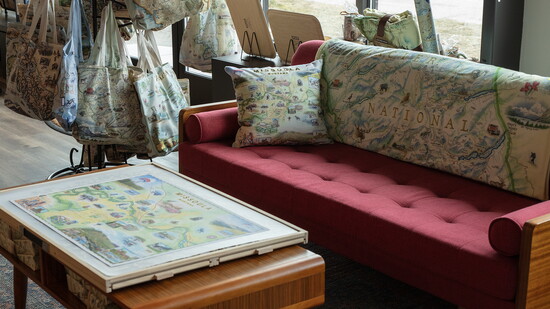 Greg’s brother Chris Robitaille, who lives in Kenya, hand draws each map. While working on a map, the brothers Zoom a couple times a week and email lists of places, references for artwork, and draft illustrations back and forth. With so much detailed, original art, the process takes significant time. “If we’re working with a partner, I’m working now on maps that are coming out in 2026 and 2027,” Greg said. “Our lead time is 18 to 24 months.”
