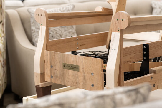 “Newcomers usually notice that Yetzer Home Store’s prices are higher than at big corporate furniture stores. They notice correctly. But we really don’t stand comparison to those places, which sell particle board schlock to the disposable generation. Our furniture is tasteful, heirloom quality, and, to the greatest extent possible, made in America. To see an example, check out our ‘naked chair’ by Smith Brothers of Berne. You’ll get an X-ray look at the weight, solidity, and Amish craftsmanship that go into each of our custom upholstered sectionals, sofas and armchairs.