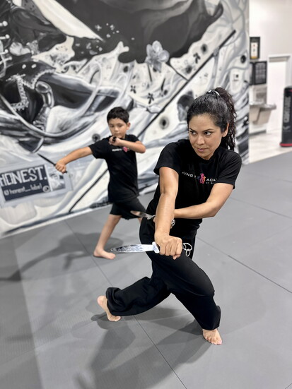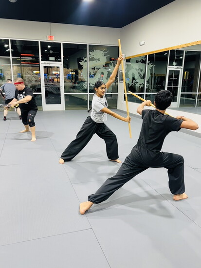 The academy serves students ages four through adult, offering a comprehensive curriculum that goes beyond basic self-defense. Students train in a complete martial arts system including striking and kicking, traditional forms, takedowns, controlled sparring, ground awareness, conditioning, and an extensive weapons program, alongside specialty classes, workshops, camps, and events.