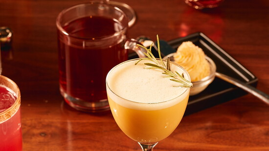 from J. Rieger Article and Photography by Ingredients 1.25 oz J. Rieger & Co. Gin 0.5 oz Pear Brandy 0.25 oz Caffè Amaro 0.75 oz Vanilla Syrup 1 whole egg Method Combine all ingredients in a shaker tin. Dry shake (no ice), then add ice and shake again. Strain into a coupe glass and garnish with toasted rosemary.