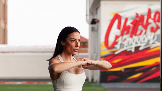 Chiefs Fit crafted a simple workout routine designed to compliment your holiday festivities Article by Nick Deason | Photography by Becca Spears Santa's Squats Starting Position: Hold the weight against your chest, elbows tucked, and look straight ahead. Brace your core. Descent: Push your hips back and bend your knees as if sitting down. Keep your chest up and back straight, ensuring knees track over toes. Depth: Lower as far as possible while keeping heels on the floor and maintaining a...