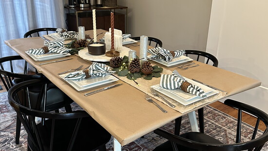Master Interior Designer Hannah Kern Explains How To Keep It Simple, Festive & Functional Article and Photography by Hannah Kern 1. Kraft paper tablecloth: Affordable, easy to clean, and perfect for a rustic touch. Bonus: let the kids draw or write what they're thankful for right on the table! 2. Get creative: Use scarves or fabric remnants as table runners, and layer mismatched plates for a charming, collected look. 3. Layered plates and napkins: Create visual depth by stacking your plates...