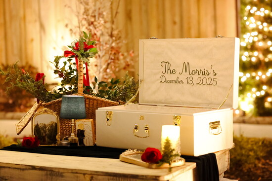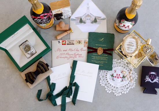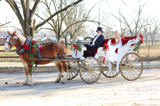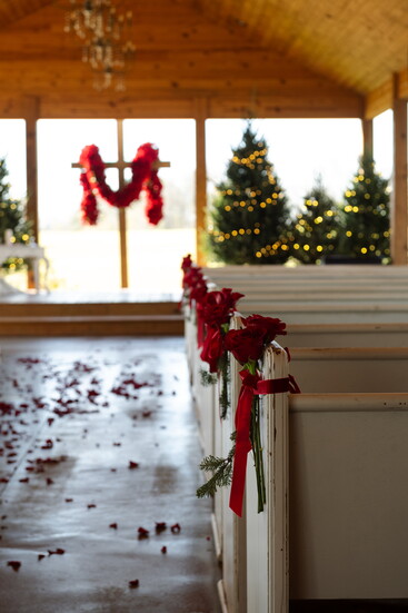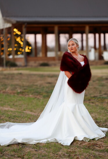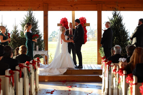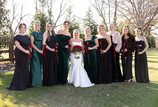 Clay proposed on December 24, 2024, setting the tone for a celebration rooted in the magic of the season. Nearly a year later, on December 13, 2025, the couple exchanged vows at The Barns at Gunn-Stewart Farm beneath clear skies and perfect winter weather. With red, green, and black woven throughout the décor, the day reflected a Christmas-inspired palette that felt elegant, cozy, and timeless.