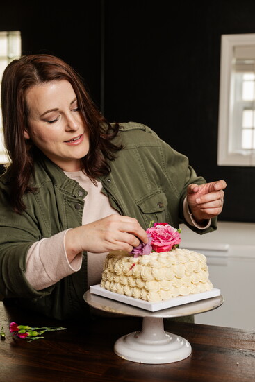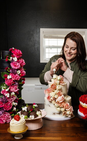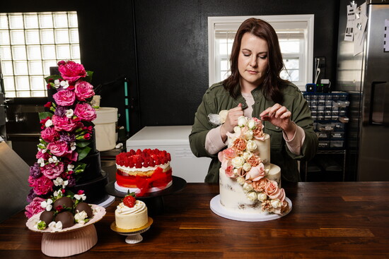 With Valentine’s Day just around the corner, Butter+Blooms boutique bakery owner Meghan Baker is in full production mode, dipping chocolate-covered strawberries, baking heart-shaped cakes, and fulfilling custom orders for Galentine’s Day-themed parties.