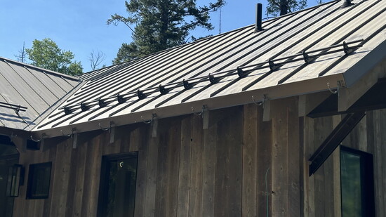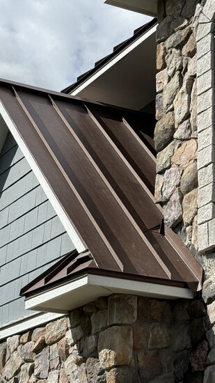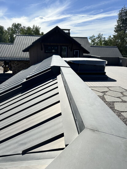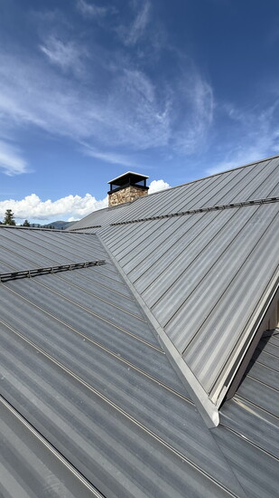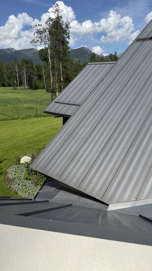 The company offers shingle, wood shake, and spray-coated roofing systems, as well as gutters, metal siding, and snow breaks, but specializes in the mechanical-lock accent seam. Roof Ops handles both residential and commercial projects and operates its own metal shop, fabricating everything in-house, including custom trim. “Mechanical-lock accent-seamed roofs are not only a higher-quality roof, but ideal for our Montana climate,” David explains. “Everything is hand-seamed, so it’s very rigid and doesn’t buckle or fold during all of the seasons we have. Ice damming is a big issue here, and this roof ensures water and moisture won’t get in.” Because this system is precise to install, it requires at least a year of specialized training, which the Foote brothers ensure every team member receives. They guarantee their roofs for life and expect them to last up to 150 years.
