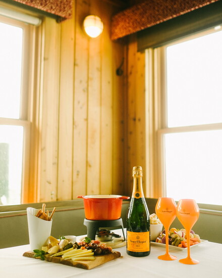 “We’ve decorated and transformed one of our hotel suites to be an immersive stay that channels the soul of Après ski living,” she says. “Think soft wool textures, vintage ski accents, and of course, Veuve Clicquot, is included in that.”