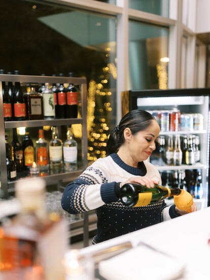 The Clicquot Chalet shines not only during the winter season, but all year round. “It’s become the hub of all of our seasonal programming at the Westin,” she says. “This past spring, we launched Garden House. We've previously been part of the Galleria Flower show and wanted to extend it into this space. So, we did a Bridgerton-inspired installation where guests could come for either afternoon tea or brunch. It was a great success. Not everyone wants to go out at night, so this was a great alternative to do something during the day.”
