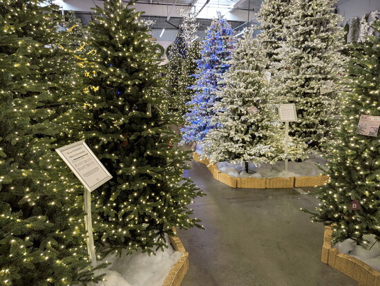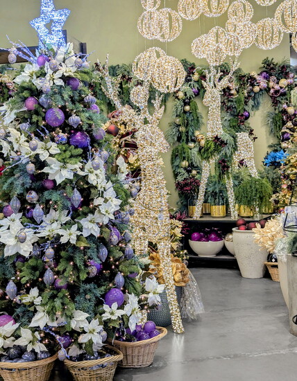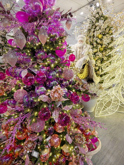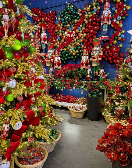 There are a near-endless procession of ornaments, each more intricate and delicate than the last. You could spend an hour alone just marveling at all the examples of luxurious Christmas ribbon. An entire wall of Christmas flowers and glimmering stems in every design and hue imaginable will have you giggling with glee. Nothing, though, can prepare you for just how jaw-droppingly gorgeous the Christmas trees themselves are.
