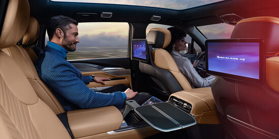 The Escalade IQ is built for comfort. With three full rows of seating and an optional second-row executive setup, there’s plenty of room for passengers to spread out. Climate controls are conveniently located in every row, and the AKG Studio Reference sound system, featuring 38 speakers and Dolby Atmos, delivers an immersive audio experience. It’s quiet, refined and feels like a true luxury SUV, just powered differently.