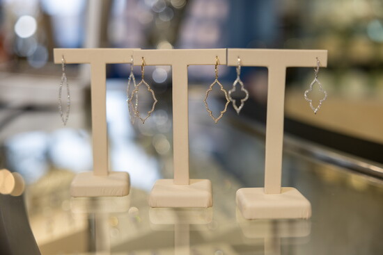 We are a full-service fine jeweler with a complete bench jeweler shop inside the store. We do all repairs and adjustments, and we offer anything related to jewelry—couture designers, custom jewelry design, engagement and wedding rings, anniversary gifts, appraisals, and consignment items.