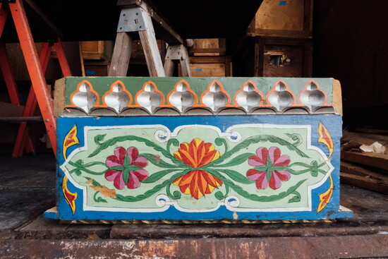 Today, the teahouse remains boxed up in two 53-foot trailers filled with massive, vividly painted panels. Nate Jones has proposed involving University of Colorado students in 3D scanning and digitally reconstructing it, potentially leading to its physical restoration, as no current drawings or plans exist.