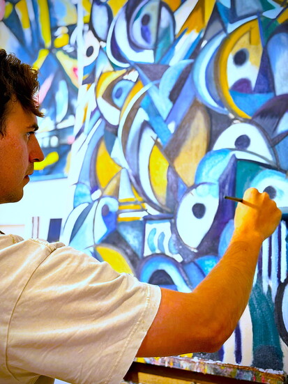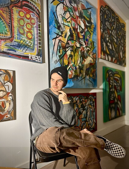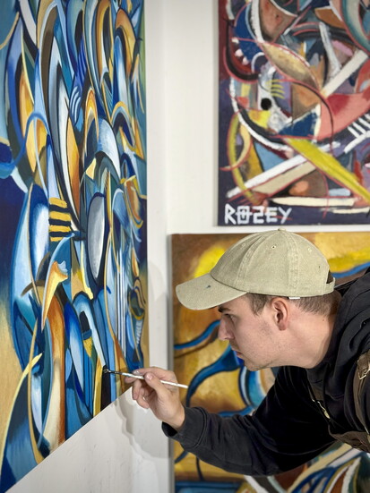 Admirers of Rosey's work indicate it's a bit like entering a world where emotions are painted with raw, vivid strokes. "I channel the depths of my inner struggles with depression and the incessant weight of OCD into my work. The canvas becomes a battleground, where shadows of despair intermingle with bursts of color that represent moments of hope," he says.