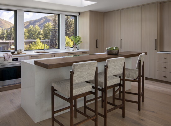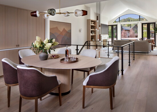 When a Florida family tapped interior designers Joe McGuire and Matthew Tenzin of Home Within by Joe McGuire Design (JoeMcGuireDesign.com) to transform a 1980s townhome in downtown Aspen into a modern yet cozy mountain retreat, they were eager to breathe new life into the outdated space. “There were a lot of strange angles and details, like a spiraling staircase next to a faceted mirrored wall,” Tenzin says. “Our clients wanted a home that felt connected to nature, with plenty of space for their kids, dog, and guests.”