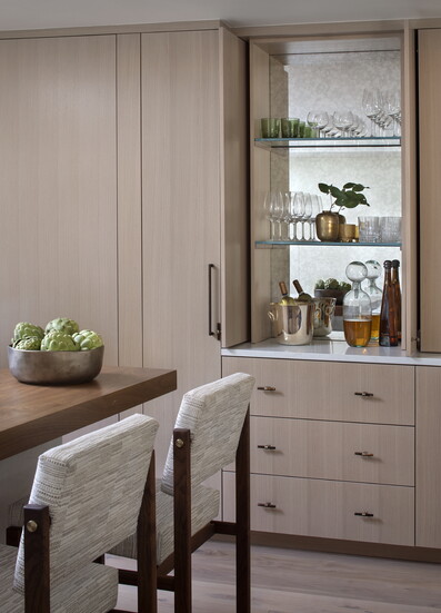 Though the townhome was renovated top to bottom, one original feature remains—a dumbwaiter, connecting the three stories from the kitchen cabinetry on the top floor. It allows for effortless grocery hauls up from the garage, or perhaps some playful mischief from the clients’ children. “There's a joyful quality to this home that starts with the clients themselves,” McGuire says. “They feel at home in this transformed space."