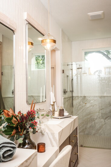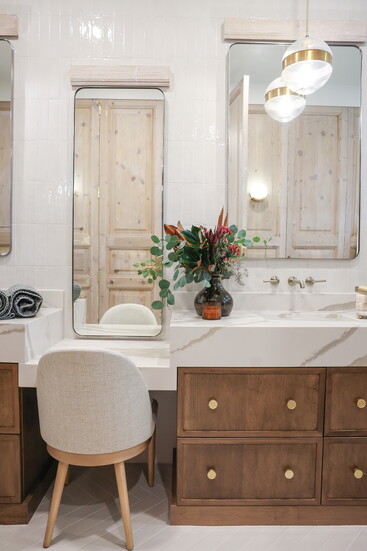 Beyond stone, Stacey sees clients increasingly eager to experiment with finishes. “Mixing metals is such a great way to accomplish custom and curated spaces,” she explains. The trick is balance: establish a dominant finish and then layer in a secondary one at about a 60/40 ratio. Whether it is cabinet hardware, faucets, or lighting, thoughtful mixing makes the space feel polished rather than mismatched.