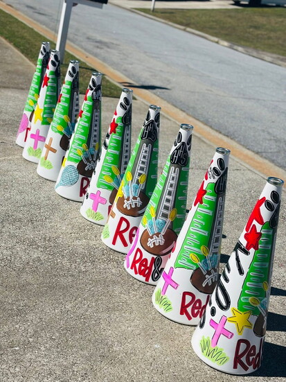 It has also been popular for the past couple of years for me to paint megaphones for the senior cheerleaders at Harlem High School. They are personalized and they use them at home games, so it’s a fun keepsake.