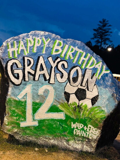 I paint a lot of business windows in the CSRA and spirit rocks at local schools for students’ birthdays. I make banners for events - birthdays, baby showers, wedding showers, bridal showers, and graduations. I also paint door hangers for all seasons.