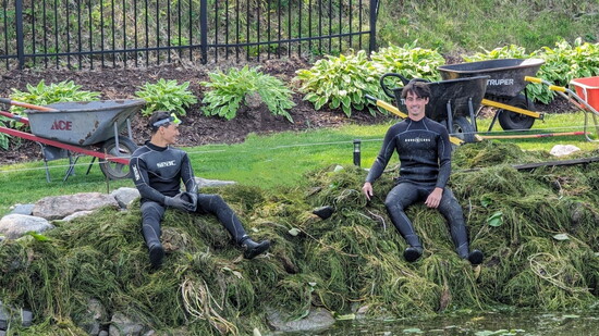 “You get the same problem with rollers and rakes. They’re nontoxic, but also unable to collect dead weeds, and they’re only effective over a limited area to boot. Really, there’s no better solution to lake weed removal than Clear Shores’ divers. We’ll make sure no weeds are left behind to decay into sludge, attract zebra muscles to your dock, or get sucked into your boat motor and jam it. (Though we do take care to conserve good habitat for the fish. Gotta keep the sunnies happy.)