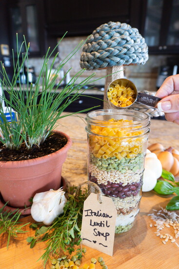 Layer ingredients in the jar in this order from bottom to top to prevent seasonings from sifting through: