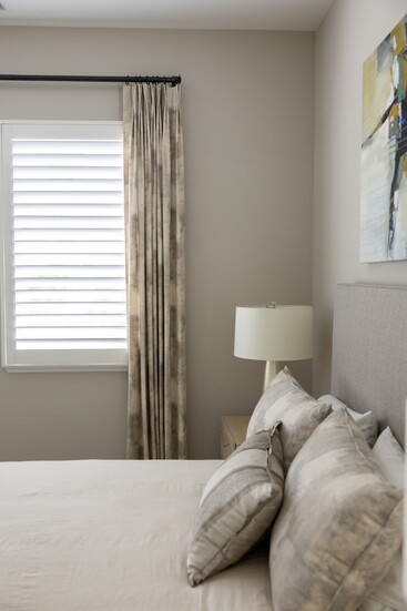 Elsewhere in the home, restraint often wins. Clean lines, ripple-fold drapery that disappears into the ceiling, neutral linen textures, oatmeal tones, soft creams, and fabrics that feel timeless rather than trendy.