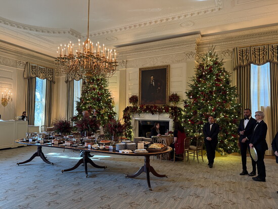 Just before sunrise on the first day, Amber and the other volunteers boarded buses to an off-site facility to prepare décor. When the time came, they transported thousands of decorations to the White House. Boxes labeled “Blue Room,” “Red Room,” and “Grand Foyer” were carried up the iconic front steps—each one another piece of a beloved national tradition taking shape.
