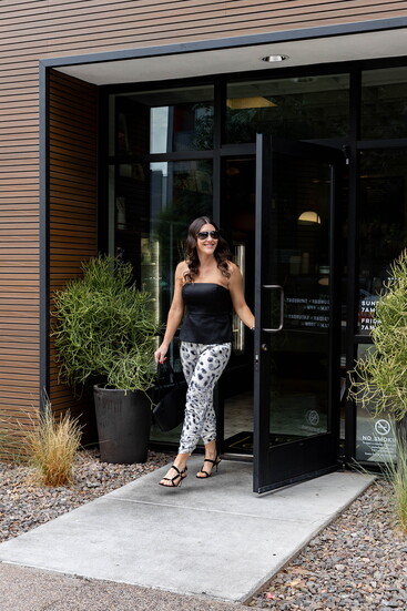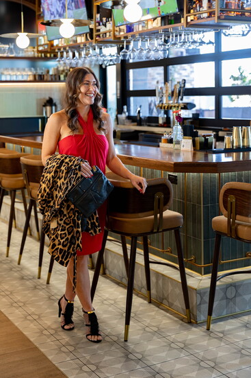 Make a statement at your office holiday party with a bold and bright pop of color in festive red. Add a playful printed coat to keep the evening chill at bay. Paired with a sleek black clutch and the flirty movement of fringe heels, this outfit is powerful, confident and ready to celebrate the season.Looks from The Posh Revival, Ahwatukee's own women's consignment shop. Shot on location at George & Gather in Chandler, Ariz.