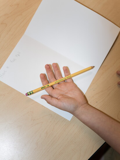 Other projects develop from classroom needs or curiosities. Building squirrel homes for the Greenwood Wildlife Rehabilitation Center started as a woodworking lesson and grew into a campus-wide effort. Fifth graders led the charge, reading wildlife-themed books to preschoolers, who then gathered pinecones to use as animal habitats. Younger grades created rice socks in science to warm orphaned wildlife, while older students constructed habitats and enrichment structures for the same purpose. The academic lessons—on stewardship, habitats, and local ecosystems—were matched by a sense of purpose. Students see their work come to life beyond the classroom walls.