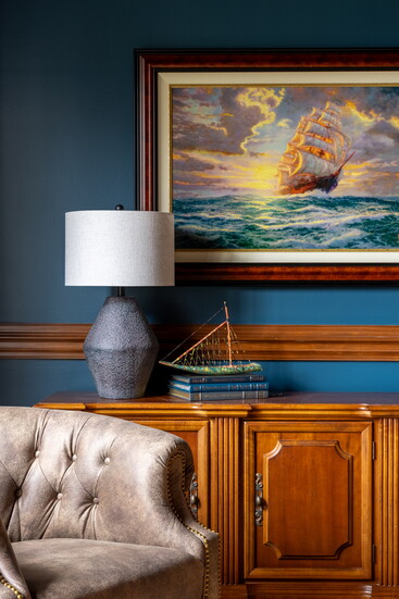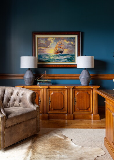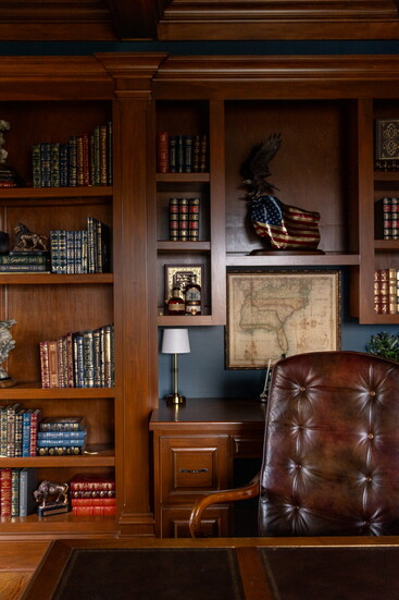 “The fun part was using the homeowners’ own books, accessories and art which held a story of their family lineage, travels, or personal collections based on their love of literature and faith.”