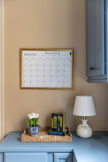 The FPD team played with symmetry, then brought in a new runner, lamps and organizational accessories to bring from and function to this hardworking space. Thompson notes that “color is coming back,” even for spaces that once were dingy mudrooms or uninspiring offices.