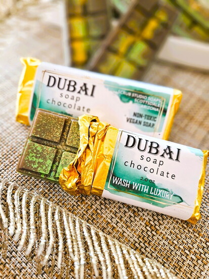 Soap bar inspired by Dubai’s indulgence by local company Scrub Studio Soaps. $14 at ScrubStudioSoaps.com