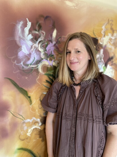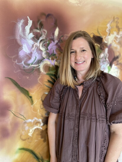 Living in Fredericksburg has also strengthened her commitment to making art accessible to the community that inspires her. While gallery representation has broadened her reach, it can create distance between artist and audience, a gap she hopes to bridge locally. Her murals at Dimona and the reimagined The Restaurant at the Albert Hotel offer immediate encounters with her work, and she values the direct relationships that grow through these efforts. Through public art and community engagement, she aims to help cultivate an art culture that feels rooted, welcoming and reflective of the region itself. Her approach centers on creating opportunities for residents and visitors to encounter art in ways that feel immediate and personal.