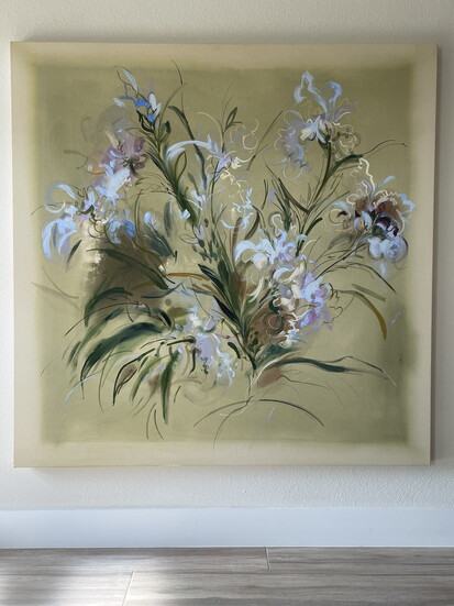 Currently immersed in a love affair with the irises she cultivates in her artist’s garden, she continues to draw from the region’s flowers, grasses and wildflowers. These elements appear throughout her paintings, where light, texture and natural movement form a quiet celebration of place and season.